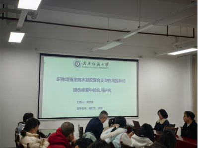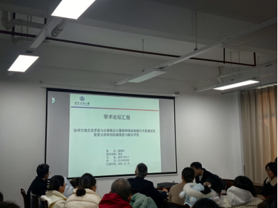 承办,金晶、包海峰两位老师担任轮值老师,学院研究生田宇奕、潘晓达两位同学分别聚焦生物医学材料与高分子复合材料领域展开汇报,全方位展现了学院在材料科学领域的创新突破与科研实力,为师生搭建了高质量的学术交流与成果转化平台。