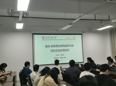 承办,刘晓洪、刘琼两位老师担任轮值老师,学院研究生张学良、张留阳、焦良宇、詹民睿、四位同学围绕新型发光材料、柔性导电复合材料、生物基功能材料、高浓度废水处理等前沿方向展开汇报,全方位展现了学院在材料科学领域的创新突破与科研实力,为师生搭建了高质量的学术交流与成果转化平台。
