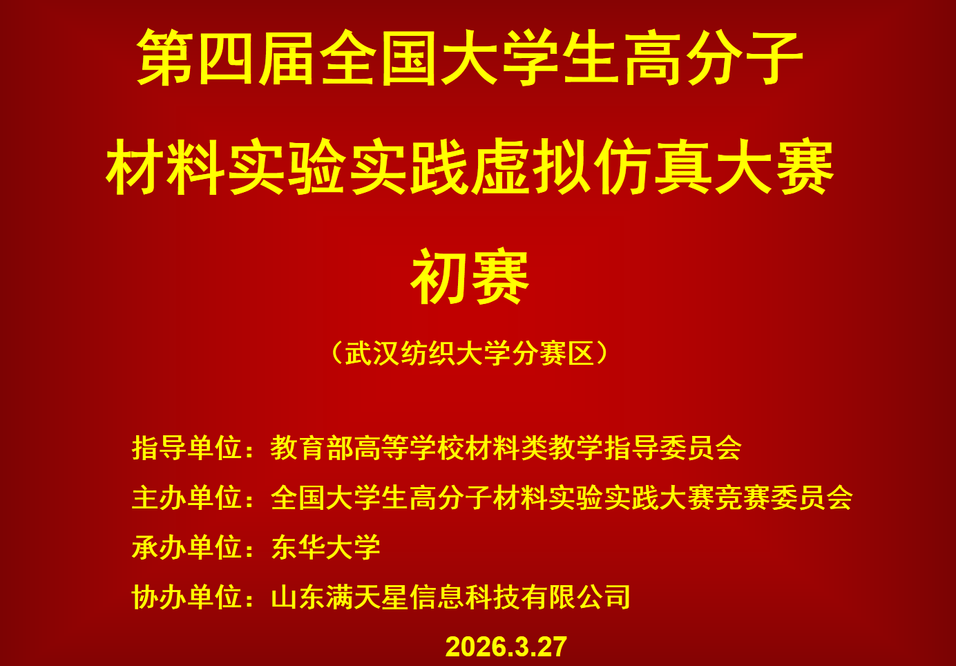 于2026年3月27日举办了第四届全国大学生高分子材料实验实践虚拟仿真大赛(成人直播平台分赛区)初赛暨校内选拔赛。